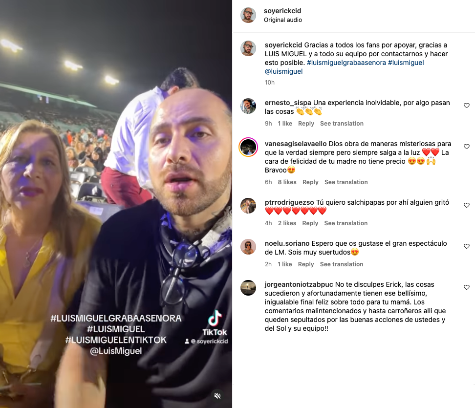 Tiempo después, el usuario @soyerickcid empleó sus redes sociales para compartir un video donde se sumamente emocionando esperando el inicio de uno de los conciertos de LuisMi en compañía de su madre.