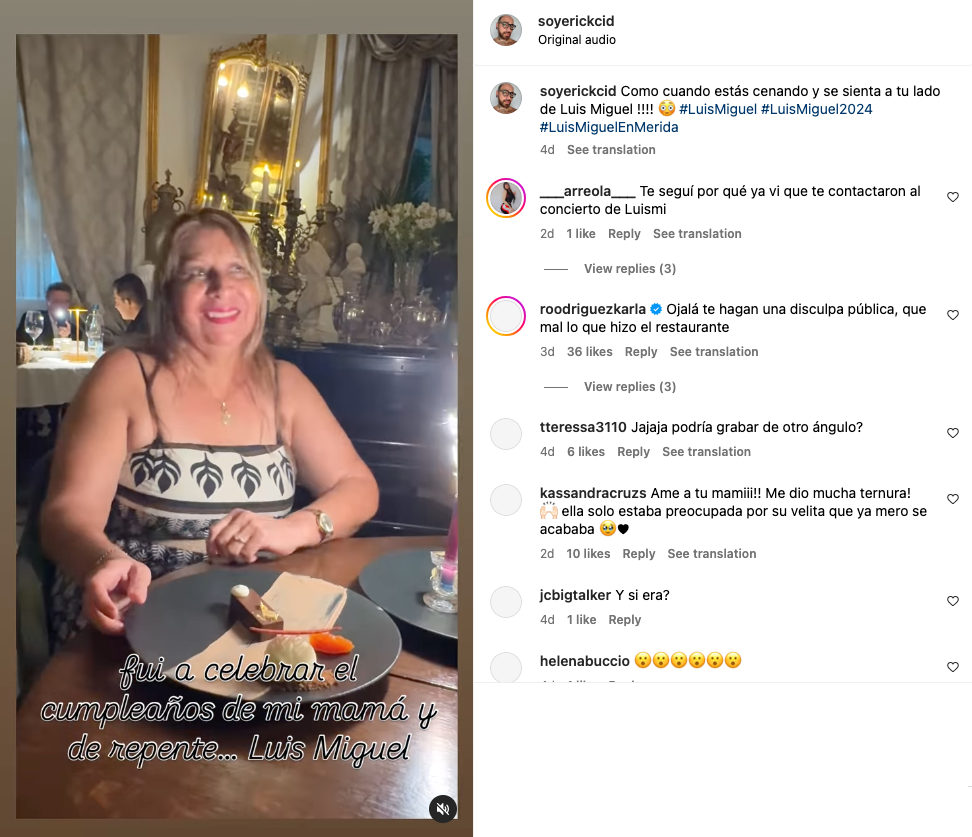 Luis Miguel fue señalado de “arruinar” dicho festejo tras pedirle a los meseros que no grabaran hacia donde se encontraba él, por lo que horas después trascendió que el equipo de “El Sol” se comunicó con madre e hijo para enmendar su error.