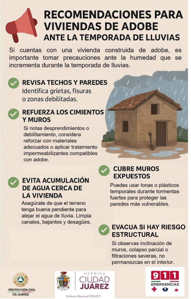 Protección Civil reiteró el llamado a la ciudadanía a mantenerse atenta a posibles afectaciones estructurales en sus viviendas y a reportarlas de inmediato, especialmente en construcciones antiguas o elaboradas con materiales susceptibles al desgaste.