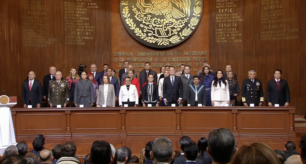 La gobernadora Maru Campos participó en la ceremonia conmemorativa por el 109 Aniversario de la Promulgación de la Constitución Política de los Estados Unidos Mexicanos, que se llevó a cabo en la ciudad de Querétaro.